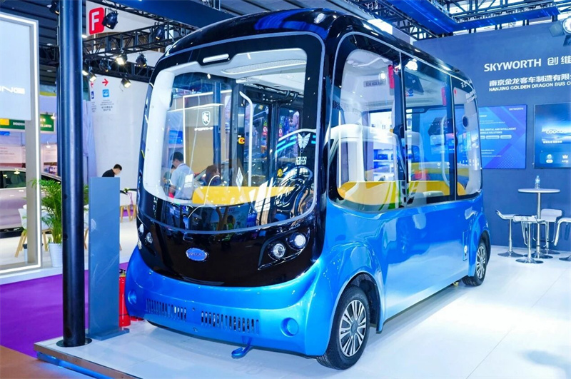 Kendaraan tamasya tak berawak level L4 Blue Whale, yang dikembangkan secara independen oleh Kaiwo Group, telah menjadi fokus ruang pameran dengan desain biomimetiknya, kokpit cerdas non-roda kemudi, dan kemampuan mengemudi otonom level L4 yang terdepan. Kendaraan ini mengintegrasikan teknologi berkendara jarak jauh 5G, persepsi panorama 360 derajat, dan teknologi mengemudi otonom berkecepatan rendah, yang dapat diterapkan secara fleksibel di berbagai skenario seperti taman teknologi, tempat wisata, pusat bandara, dan resor. Ini merupakan tonggak penting bagi Skyworth Automotive untuk merancang transportasi cerdas masa depan.